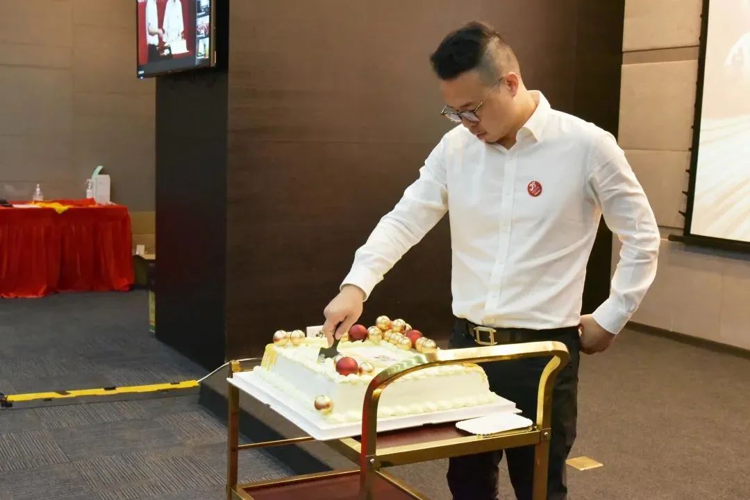 在胡成国的带领下,各会场同时切开生日蛋糕,共同欢庆德力西生日快乐。